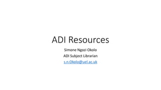 The document provides information about resources available through the British Library Sounds collection, including over 50,000 recordings from around the world covering music, spoken word, nature sounds, and oral histories. The recordings are divided into 9 categories and include examples such as interviews with authors, classical music performances, wildlife recordings, and recordings of accents and dialects from the UK. Contact information is provided for the ADI Subject Librarian to get further assistance accessing and using the British Library Sounds collection.