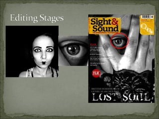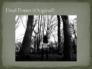 The document discusses how the group's media products for a horror film trailer effectively combine through consistent style and representative elements. The magazine cover, poster, and trailer all feature the same main character Radiya and use a color scheme of black, white, and red. Intertitles in the trailer match the font and colors of the other products. Close-ups of Radiya's face in different media help familiarize the audience with her without revealing too much of the plot. The teaser trailer establishes key elements of the story in a suspenseful way that matches the mysterious atmosphere of the poster and magazine cover.