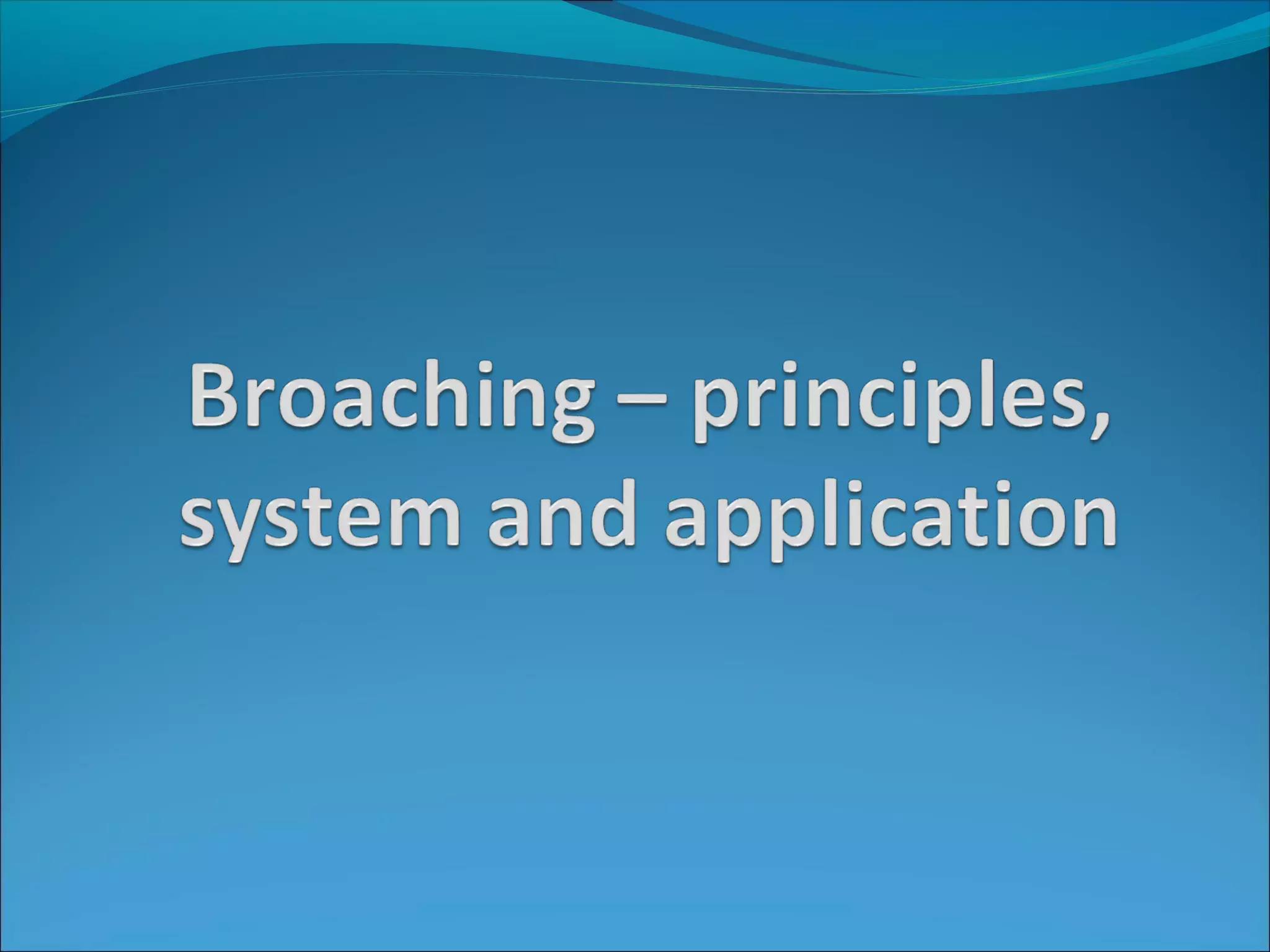 Broaching is a machining process that removes material in a single stroke using a broach tool with gradually rising teeth. It can machine internal and external surfaces and is well-suited for mass production. The appropriate broach type and broaching machine must be selected based on the workpiece material, size, and desired machining operation. Broaching provides high production rates, accuracy, and surface finish compared to other machining methods.