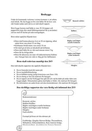 Ha information om andra broar och dess konstruktioner. (Se matrisen för betyget)