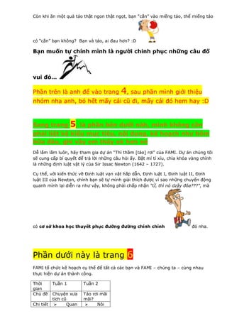 Dự án 'Thì thầm [táo] rơi' của Fami sẽ khám phá những bí ẩn khoa học qua các kiến thức vật lý của Newton liên quan đến sự rơi của quả táo và các chuyển động xung quanh. Dự án sẽ bao gồm các tuần học về định luật vạn vật hấp dẫn cũng như các định luật chuyển động của Newton. Người tham gia sẽ cùng nhau tìm hiểu và thu hoạch kiến thức để giải thích những hiện tượng tự nhiên thú vị.