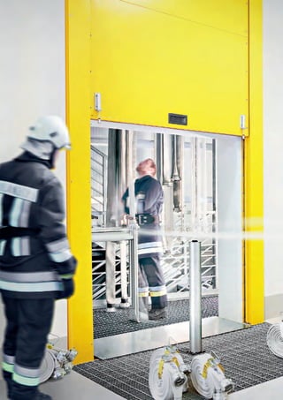 This document is a general brochure from 2011 for Ninz S.p.A., an Italian manufacturer of fire doors, multipurpose doors, gates, and related accessories. It provides an overview of the company's history, facilities, production capabilities, research and design processes, certifications, and markets served. Key points include Ninz having a 70% market share in Italy for fire doors, manufacturing taking place in two facilities in Italy, daily production capacity of 2000 doors, and distribution throughout Europe and other international markets.