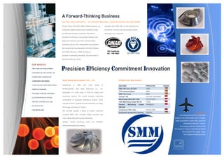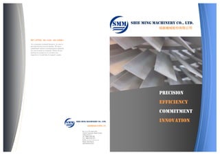 Shie Ming Machinery Co., Ltd. is an ISO 9001:2008 certified precision machining company located in Taiwan. They aim to provide the best customer service and have various communication channels available. The company has a range of CNC and other machining equipment from reputable manufacturers. They specialize in mold and die development, component machining, and surface finishing services for technology companies.