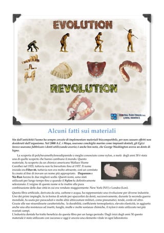 Il documento discute l'importanza dei materiali biocompatibili nel settore odontoiatrico, con un focus sul nylon come innovazione fondamentale a partire dagli anni '30. Viene evidenziato come le protesi parziali flessibili (F-RPD) presentino vantaggi significativi rispetto alle protesi rigide, inclusa una maggiore comfort e una migliore adattabilità per i pazienti. Inoltre, la Dental Flex Italia offre supporto ai laboratori e ai professionisti dentali attraverso garantiti materiali e formazione per l'uso dei loro prodotti.