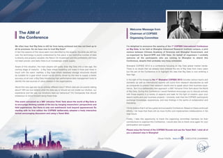 The 1st COPSEE International Conference on Big Data aims to discuss the current state and future of big data, addressing issues such as skill scarcity, understanding of technology, and the value of data. The conference encourages a 360° interactive format, merging perspectives from researchers and industry experts to foster collaboration and innovation. Participants are invited to actively engage in discussions and explore new findings during the event held in Shanghai.