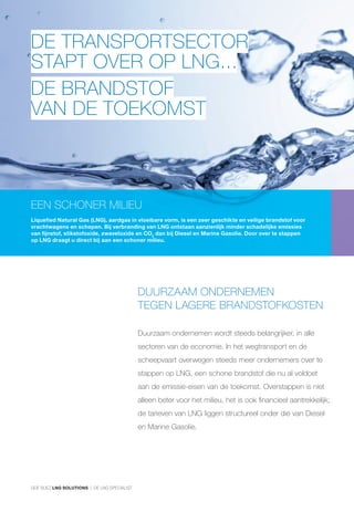 vrachtwagens en schepen. Bij verbranding van LNG ontstaan aanzienlijk minder schadelijke emissies