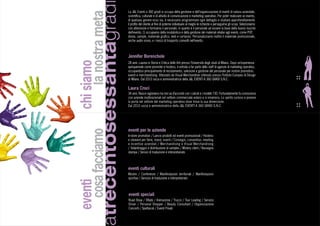 J&L Eventi è un'agenzia che si occupa di organizzazione e gestione di eventi aziendali, puntando sulla personalizzazione e sulla qualità del servizio. Il team, composto da professionisti con esperienze diverse nel marketing operativo, si dedica a pianificare dettagliatamente ogni aspetto dell'evento per soddisfare al meglio le richieste dei clienti. Offrono servizi che spaziano da promozioni in-store a eventi culturali e privati.