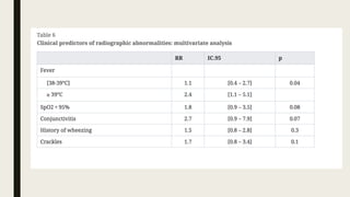 This document provides an overview of bronchiolitis including pathogenesis, microbiology, risk factors, clinical presentation, diagnosis, and treatment recommendations. Bronchiolitis is typically caused by viral infection, most commonly RSV, and causes inflammation in the small airways. Clinical diagnosis is based on symptoms of fever, cough and respiratory distress. Treatment focuses on supportive care like hydration and supplemental oxygen rather than medications like bronchodilators or steroids which studies have shown are not effective. High flow nasal cannula may help reduce respiratory distress. Prevention involves reducing exposure to tobacco smoke which increases risk and severity.