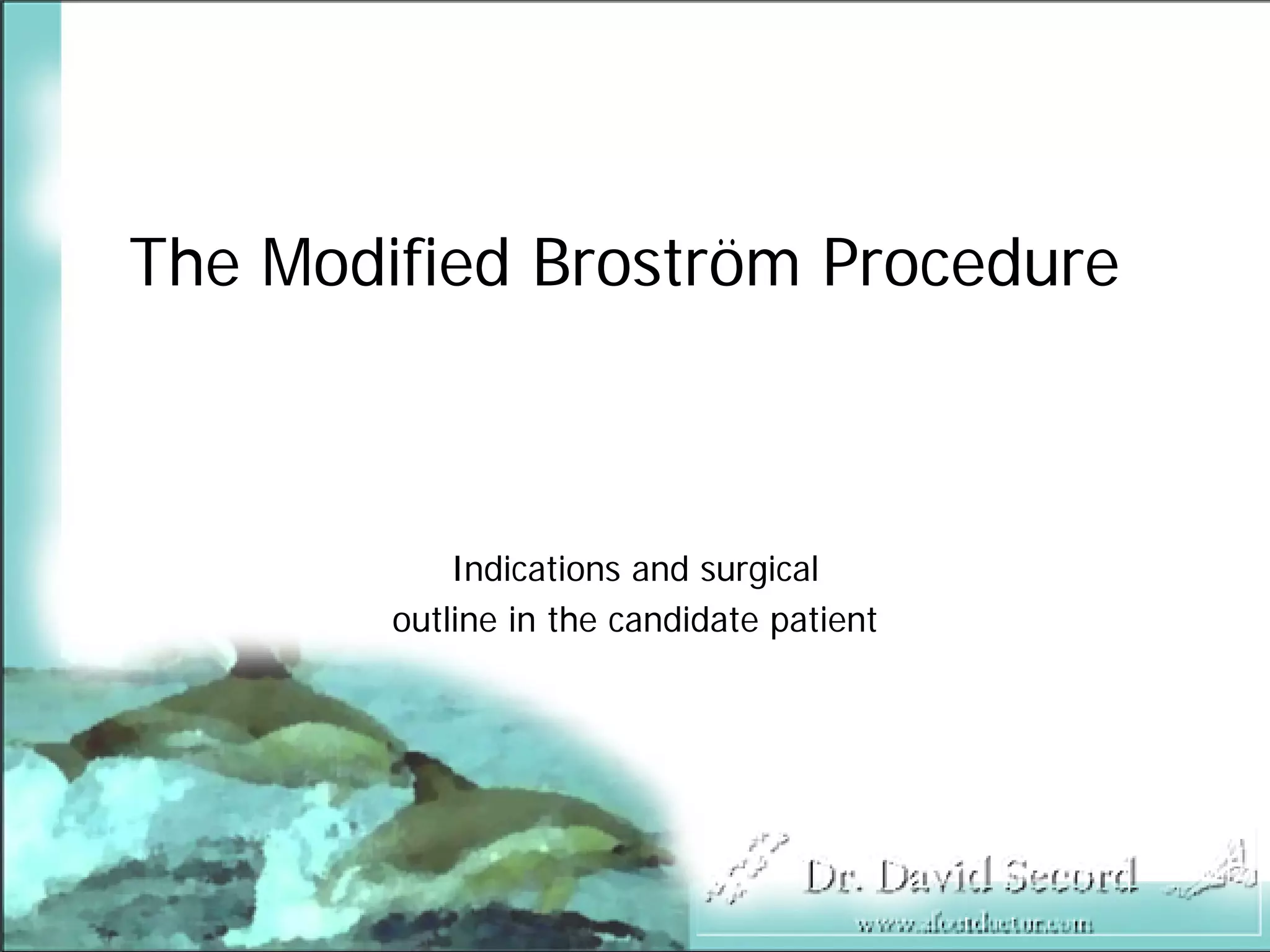 The document describes the Modified Broström Procedure for treating unstable ankles. It discusses how ankle instability is graded from I to III based on the amount of instability present. It notes that grade I and some grade II ankles may be treated conservatively through physical therapy and bracing, while grade III typically requires surgical reconstruction. The Modified Broström Procedure is described as restoring stability through anatomic repair of the ligaments while preserving range of motion and the peroneal tendons. It involves attaching the extensor retinaculum to reinforce the repaired ligaments and correct subtalar instability.