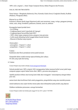 Dokumen ini menjelaskan tentang kapsul mengkudu isi 300 untuk mengatasi hipertensi dengan harga grosir Rp49.500 dan jaminan 100% aman. Produk 100% asli dan alami, tanpa campuran kimia, serta dilengkapi sertifikat halal. Aturan pemakaian dan cara penyimpanan juga disertakan untuk memastikan efektivitas produk.