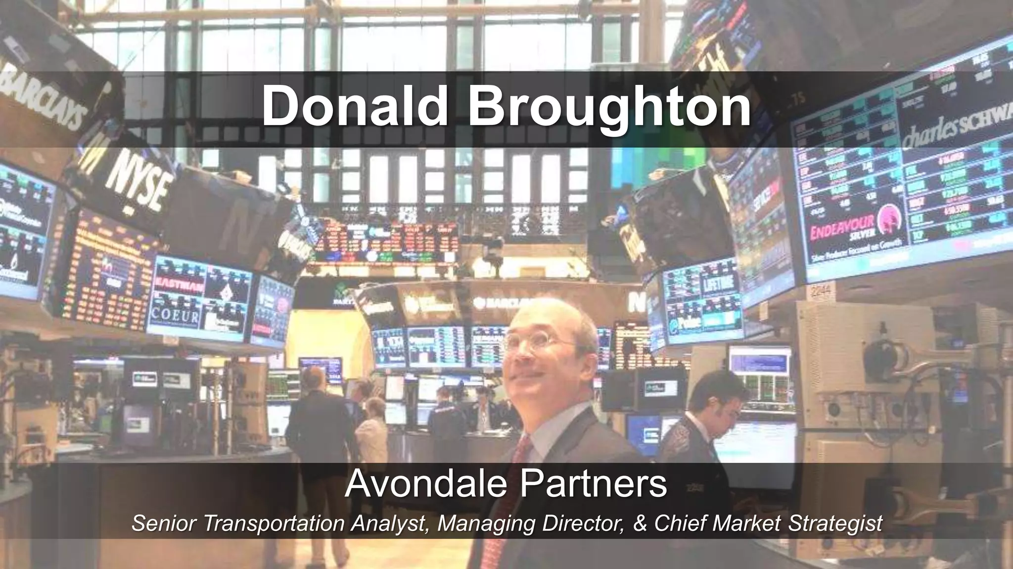 This document provides an analysis of macroeconomic and transportation industry trends by Donald Broughton, Senior Transportation Analyst at Avondale Partners. It includes charts and commentary on topics like inflation, interest rates, tonnage growth across transportation modes, capacity constraints in trucking and rail, and the relationship between freight demand, pricing, and trucking company failures. The overall message is that while macroeconomic indicators appear weak, transportation data tells a different story of recovery and tightening capacity that supports continued improvement in freight rates.