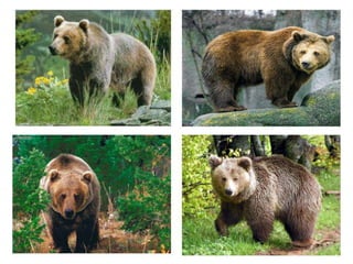 Bears are large omnivorous mammals found across the globe. They come in several varieties, including brown bears, black bears, giant pandas, red pandas, and polar bears. Bears have a strong sense of smell but weak vision. They eat plants and supplement their diet with small mammals, fish, insects, and honey. Bears live solitary lives and females care for their young cubs for over two years. Polar bears in particular are well-adapted to Arctic conditions with thick fur and fat layers that insulate them from the cold.