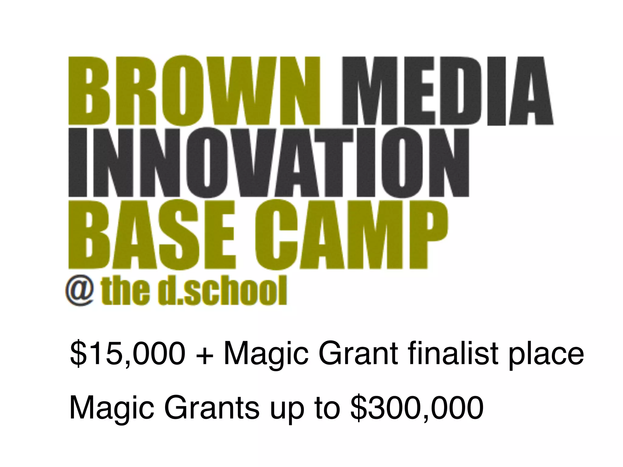 The document describes the Magic Grants program which provides funding of up to $300,000 for innovative media projects. It highlights several projects that were previously funded, including a collaborative story writing platform and a mobile publishing protocol for conflict reporting. The grants support students at all levels from multiple universities, with deadlines in February-March 2015 and an opportunity to present projects to the review committee. The guiding principles emphasize broad impact, open competition of ideas, intellectual merit, multi-disciplinary collaboration, and helping ideas grow beyond the institute.