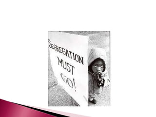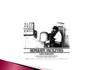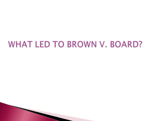 1) Plessy v. Ferguson established the "separate but equal" doctrine in 1896, allowing racial segregation in public facilities as long as the facilities for black and white citizens were equal.