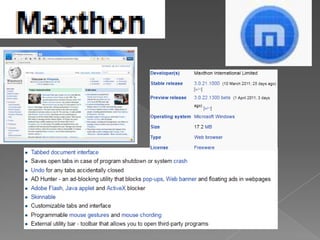 2. Firefox uses sandbox security and SSL/TLS encryption. It has features like tabbed browsing and extensions.