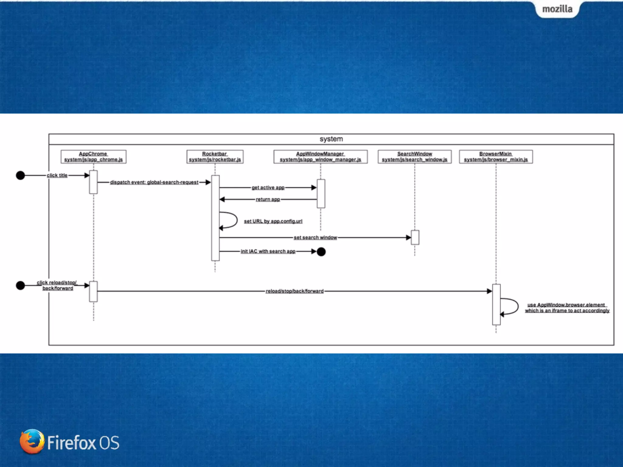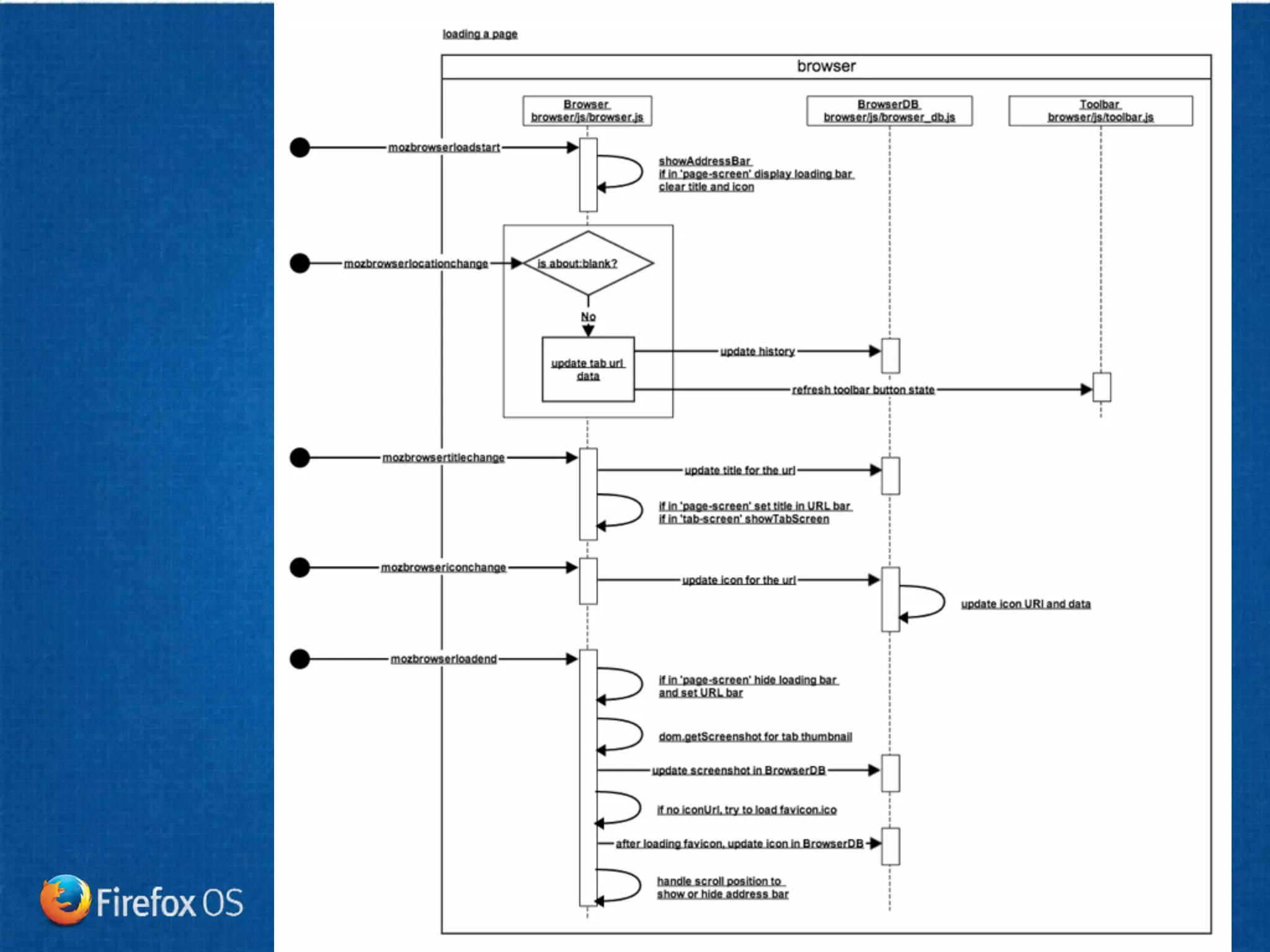 The document outlines the functionalities of a browser application, detailing its components such as navigation controls, bookmark management, and handling of user interface events. It includes descriptions of various browser modules, event handlers, and the structure of the underlying database used for managing bookmarks and browsing history. It also covers the integration of NFC capabilities for sharing links and the system interactions for handling bookmarks from a homescreen app.