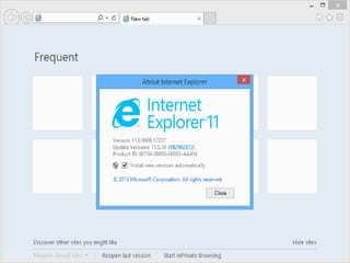 This document discusses various web browsers including their history, features, and statistics. It provides an introduction to web browsers and how they allow users to access information from web servers through a client program. The first browser was invented in 1990 by Tim Berners-Lee called WorldWideWeb. Key browsers discussed include Mosaic which was the first to display images inline, Chrome which is fast and simple, Firefox which provides tabbed browsing and extensions, Internet Explorer which started the first browser war, Opera which has speed dial and private browsing, and Safari which is optimized for Mac. Statistics from 2016 show Chrome as the leader at 69% followed by Firefox, Safari, Opera, and Internet Explorer.