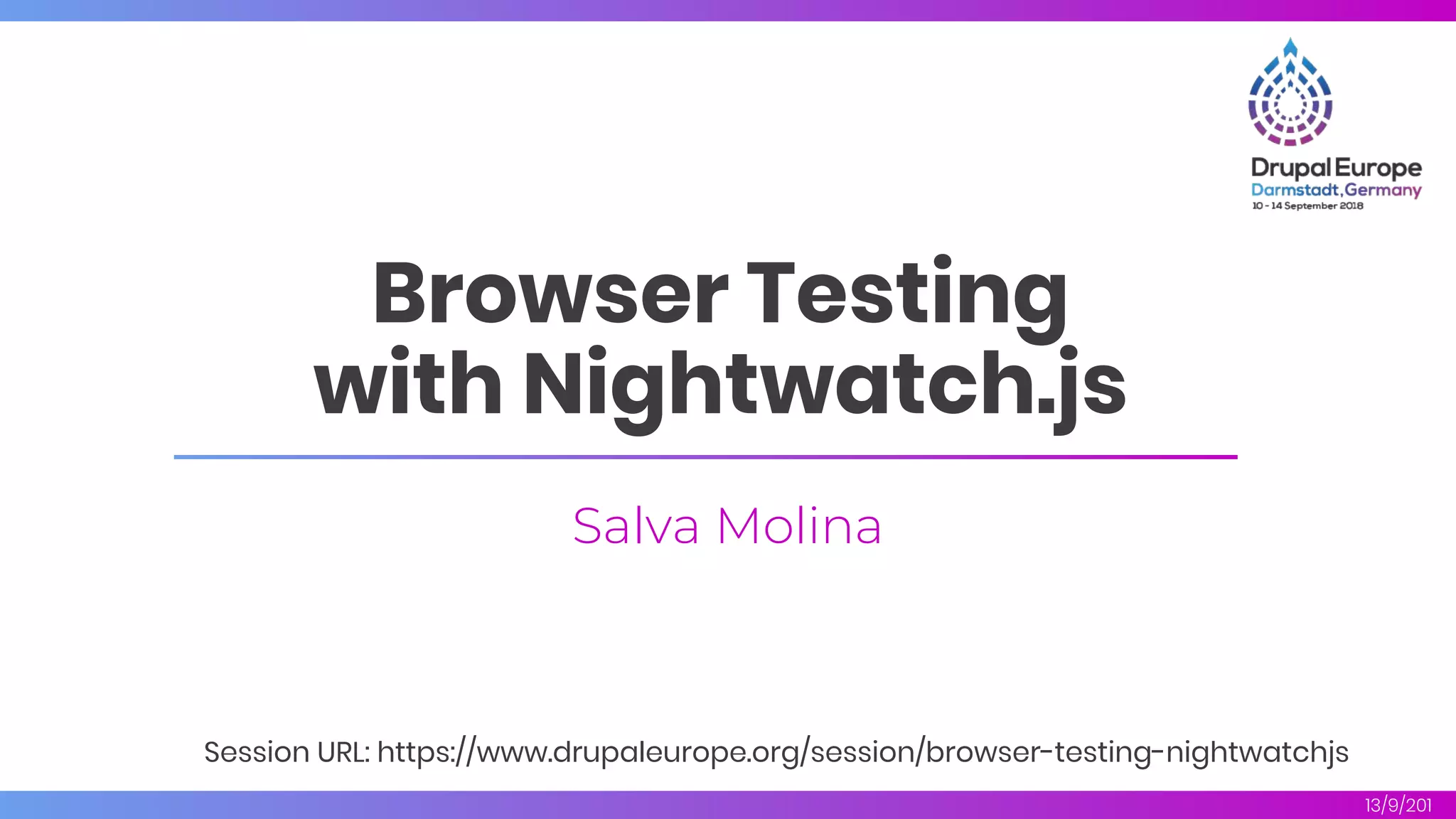 The document provides an overview of using Nightwatch.js for browser testing, particularly in the context of Drupal development. It details setup instructions, configuration for environments, and the use of various features such as page objects and custom commands. Additionally, it discusses the pros and cons of adopting Nightwatch.js in development workflows, along with a live demo and links to further resources.