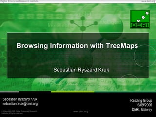 The document discusses the concept and applications of treemaps in managing metadata and visualizing data, particularly in the context of Web 2.0 tagging systems. It explores various algorithms for creating treemaps, shares success stories of their implementation across different platforms, and concludes that while treemaps provide compelling information representation, challenges remain in displaying hierarchical structures effectively. The document highlights the potential for non-rectangular solutions and emphasizes the value of zoomable interfaces in data visualization.