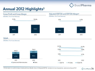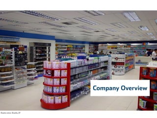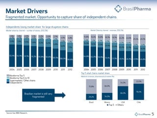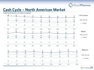 This document contains various charts and tables with financial and operational metrics for a company over several years. It shows metrics such as number of stores, revenue, market share by region, expenses, cash position, debt levels, and valuation multiples. There are also charts comparing the company to competitors on metrics like revenue growth and profitability. The data indicates the company has grown organically and through acquisitions, with increasing revenues, stores, expenses, and debt levels over time.
