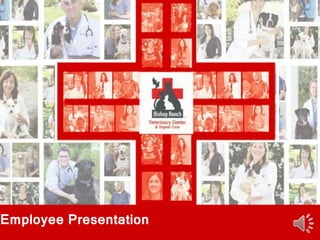 The document outlines the vision, mission, and core values of BRVC veterinary clinic. It provides details on the clinic's clients, patients served, feedback received from clients, and improvements made. The core values of education, teamwork, client service, community, and medicine are discussed. The presentation recognizes staff for their years of service and outlines future plans for the clinic.