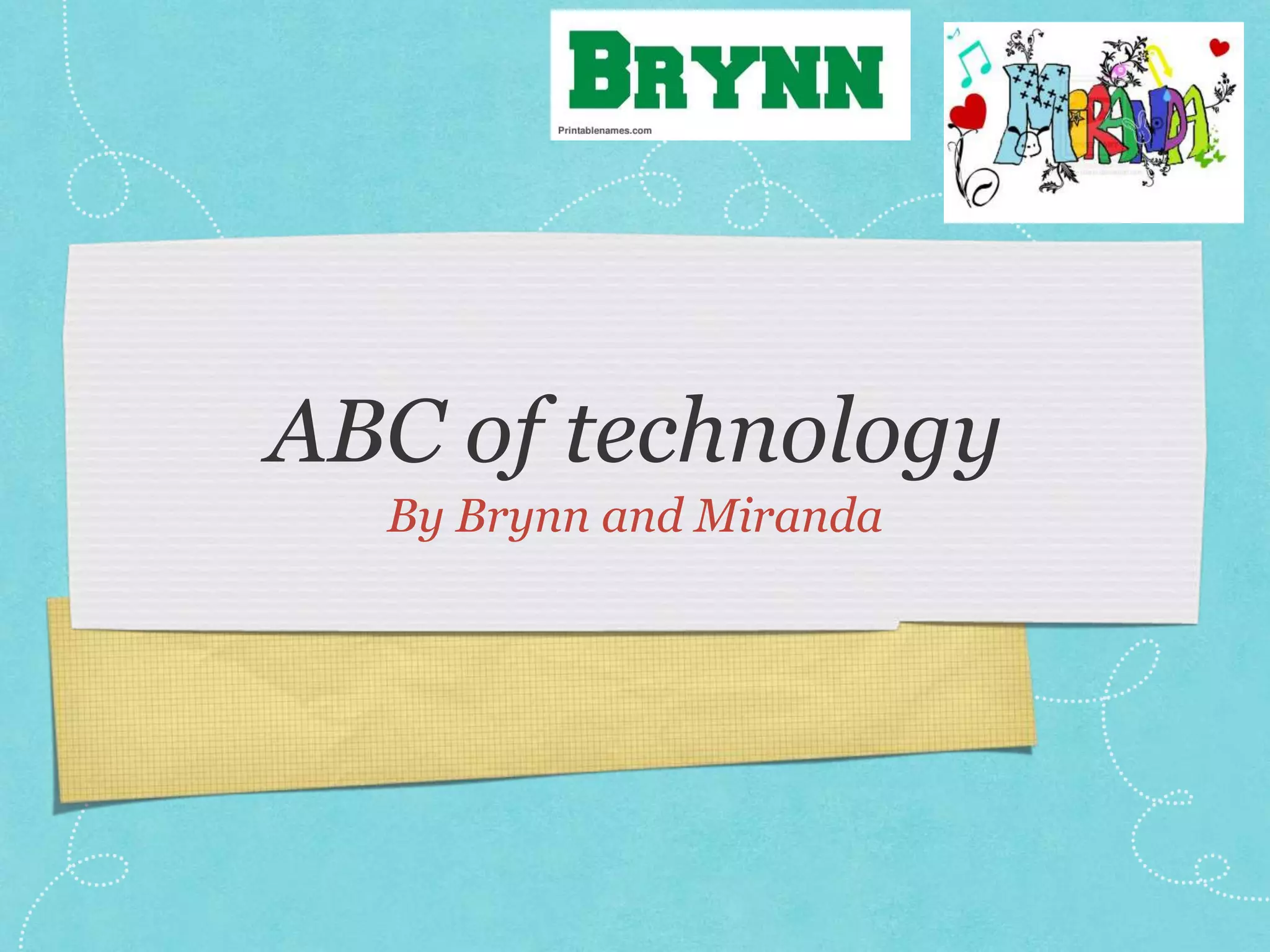 This document is an alphabet book about technology terms written for children. It defines one technology-related term for each letter of the alphabet, ranging from common words like app, blog, computer, and data, to more specific terms like jpg, vlog, qwerty, and zappos. The definitions provided are simplified explanations intended to help kids understand basic concepts and vocabulary related to technology and digital media.
