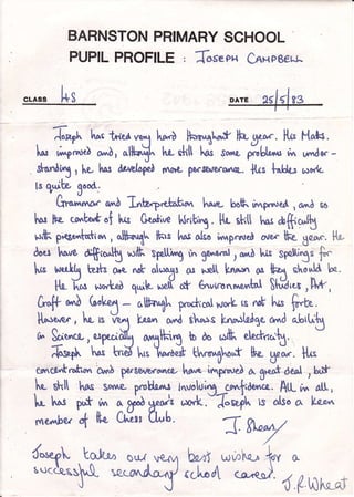 Iain is an 11-year-old pupil who has developed positive personal qualities. He has quite good verbal skills and his chronic ear infection has improved with treatment. Iain enjoys environmental activities and knows a lot about nature. He is keen to learn and tries his best in most subjects. Overall, Iain has made good progress and works well.