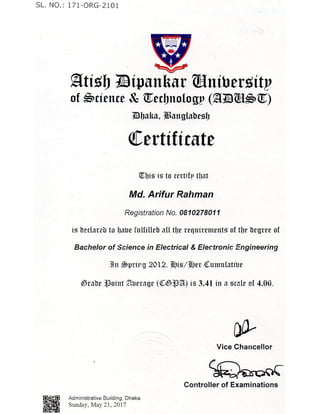 B.Sc in EEE Certificate