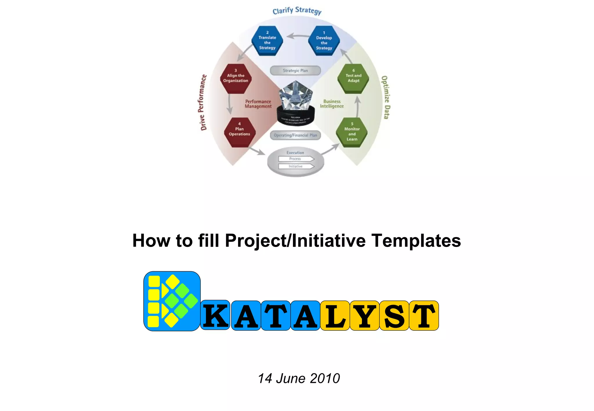 The document provides guidance on how to effectively plan projects and initiatives using templates. It outlines key elements to include such as objectives, organizational structure, budgets, milestones, risks, communication plans, and metrics to measure performance. Templates are included to help capture this essential information to ensure projects are well-planned and deliver desired results.