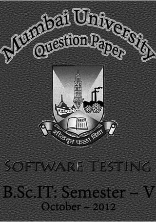 The document contains a series of question papers for Mumbai University covering various subjects like Network Security, ASP.NET with C#, Software Testing, and Advanced Java for B.Sc. IT students in their fifth semester. Each section provides a set of mandatory questions that students must attempt, with specific marks assigned to each question and guidelines for responses. Topics across the papers include firewall concepts, DES modes, software testing life cycles, servlet lifecycle, and Java applications, demonstrating a comprehensive examination framework for assessing students' understanding in these fields.