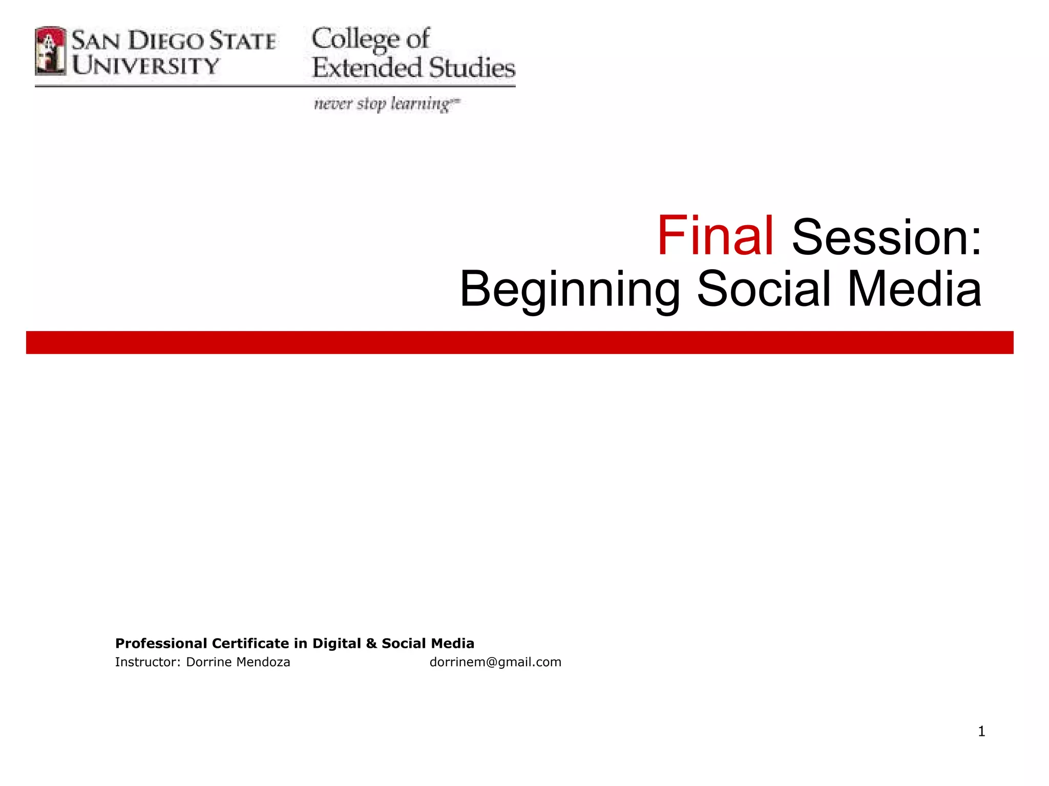 The document provides an overview and introduction to social media platforms Facebook and Twitter. It discusses key features of each platform, including how to build a profile, engage with other users, and learn more. It also provides tips on using each platform effectively and strategies for gaining followers and increasing engagement.