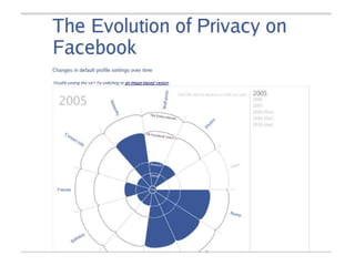 This document discusses several topics related to digital identity, privacy, and technology including digital identity and privacy management, innovation and entrepreneurship using social enterprise, online collaboration and teamwork, the role of social media, cloud computing and mobile devices, crowdsourcing and open source models, lifelong learning through social networks, project management, proactive healthcare using social networks, and environmental sustainability.