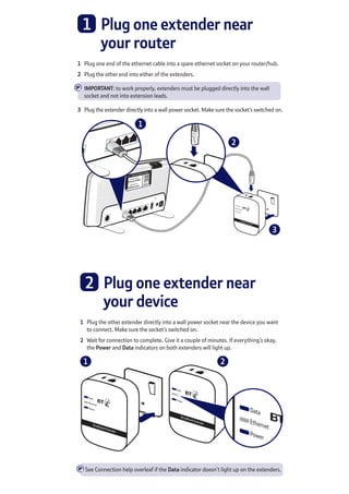 2. Status lights on the extenders indicate the connection status and additional extenders can be added to expand network coverage.