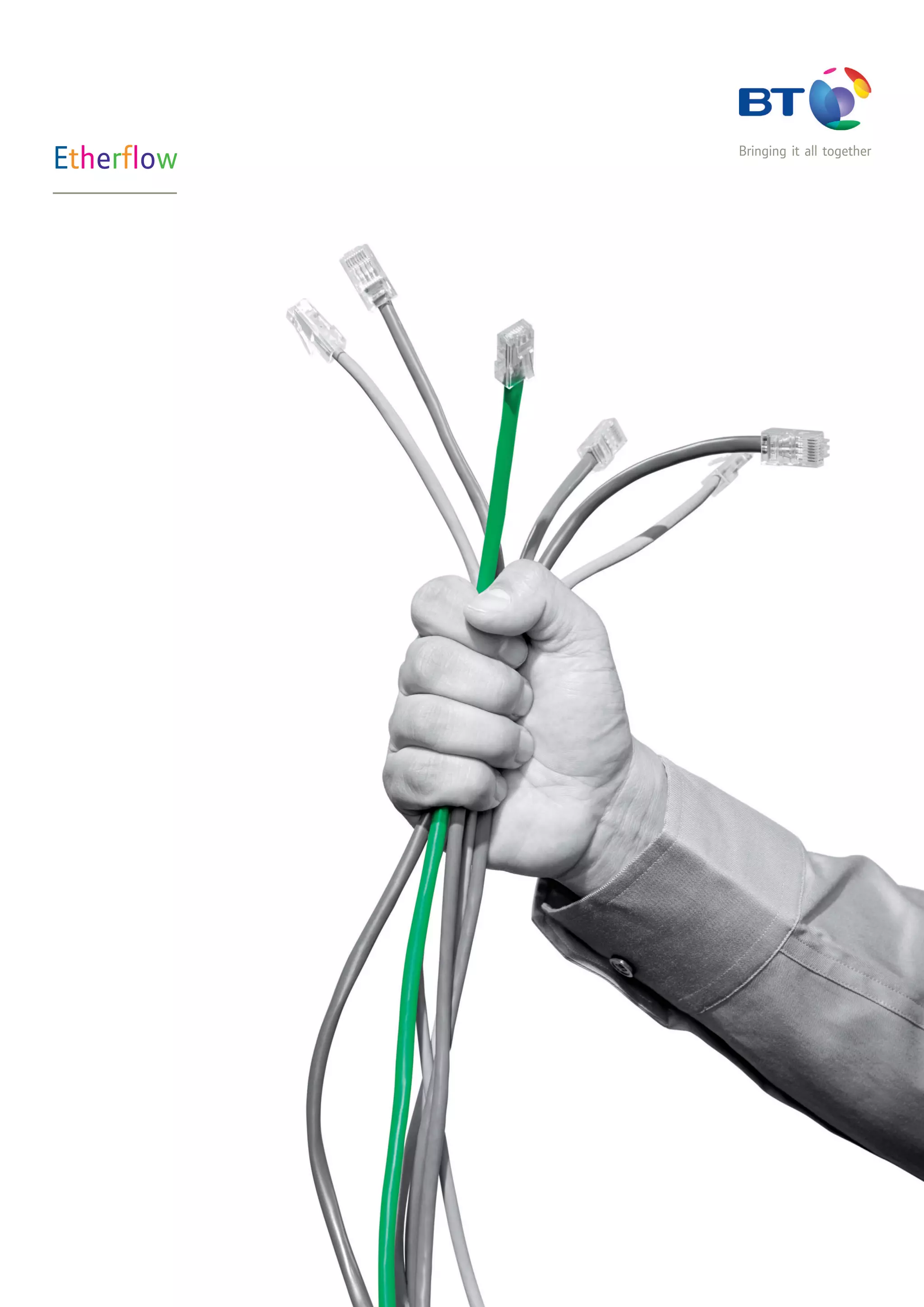 BT Etherflow is a managed wide area Ethernet service that provides flexible "building blocks" to meet changing network needs. It offers high bandwidth connectivity through BT's 21st Century Network, along with features like native Ethernet, access speeds up to 1Gbps, virtual connections between sites, and a customer portal for online management. BT Etherflow is designed for data-intensive environments that require high bandwidth, control over IP architecture, and support for non-IP applications.