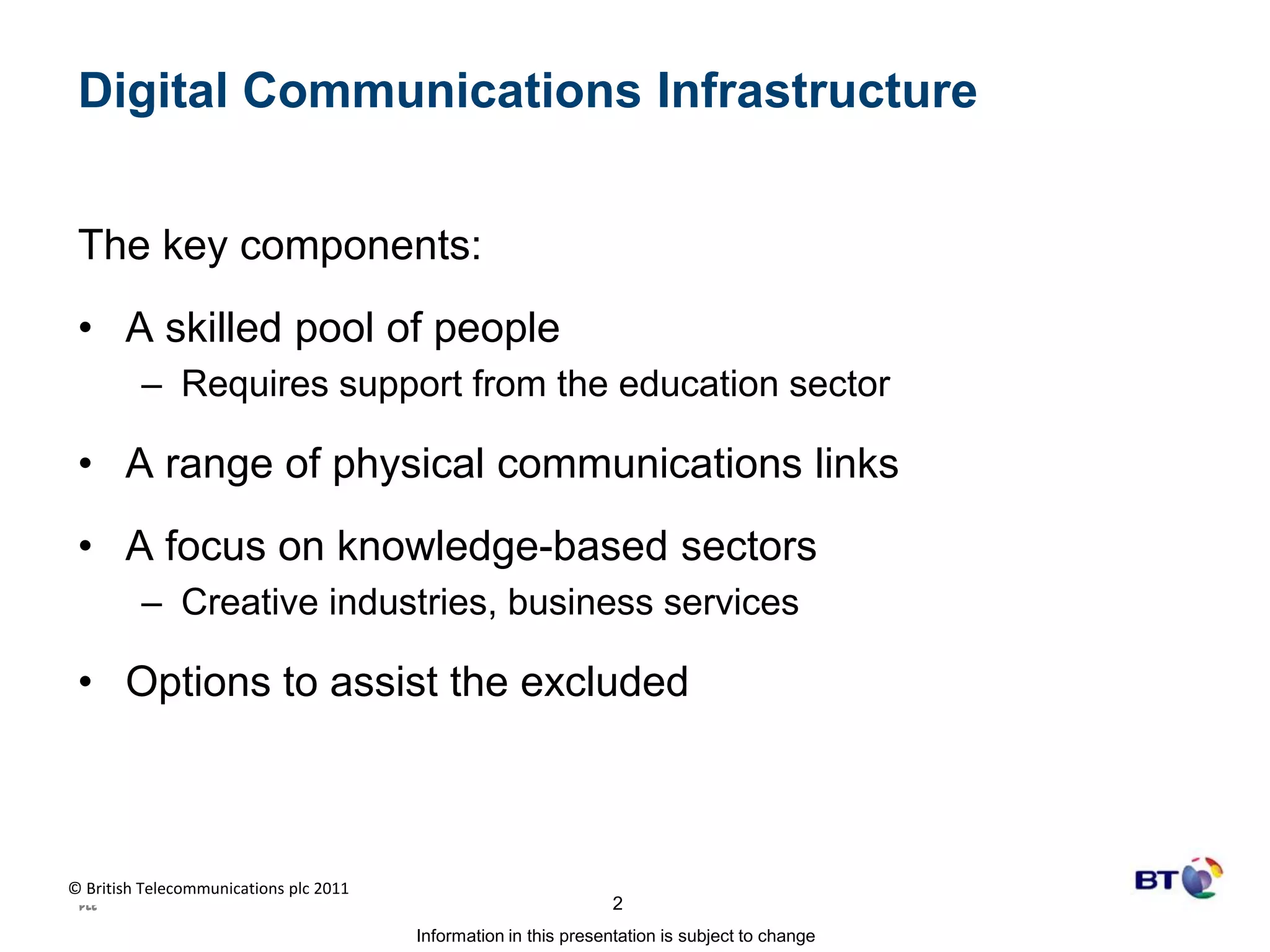 The document summarizes digital infrastructure and connectivity in the Thames Gateway region of London. It notes that London has embraced the internet and has high-quality telecommunications infrastructure. Broadband access in the Thames Gateway includes options from standard broadband up to 10Gbps fiber connections for businesses. The deployment of super-fast broadband is outlined, with over 90% of Londoners to have access by the end of 2011. Ensuring digital inclusion for all is also discussed.