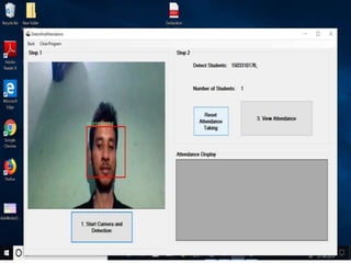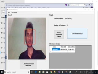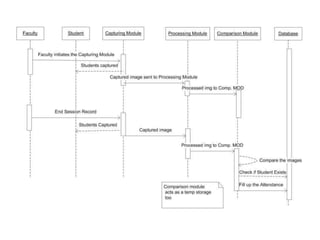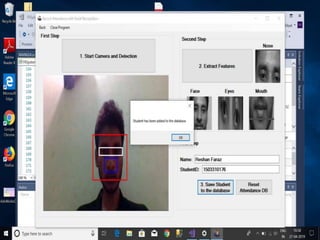 The document outlines a face recognition attendance system developed by a team guided by Mr. Prince Gupta. It includes an overview of the system's working mechanism, roles of faculty and students, and requirements for maintaining attendance records under specific conditions. The system aims to ensure accurate attendance tracking while also performing surveillance during lectures.