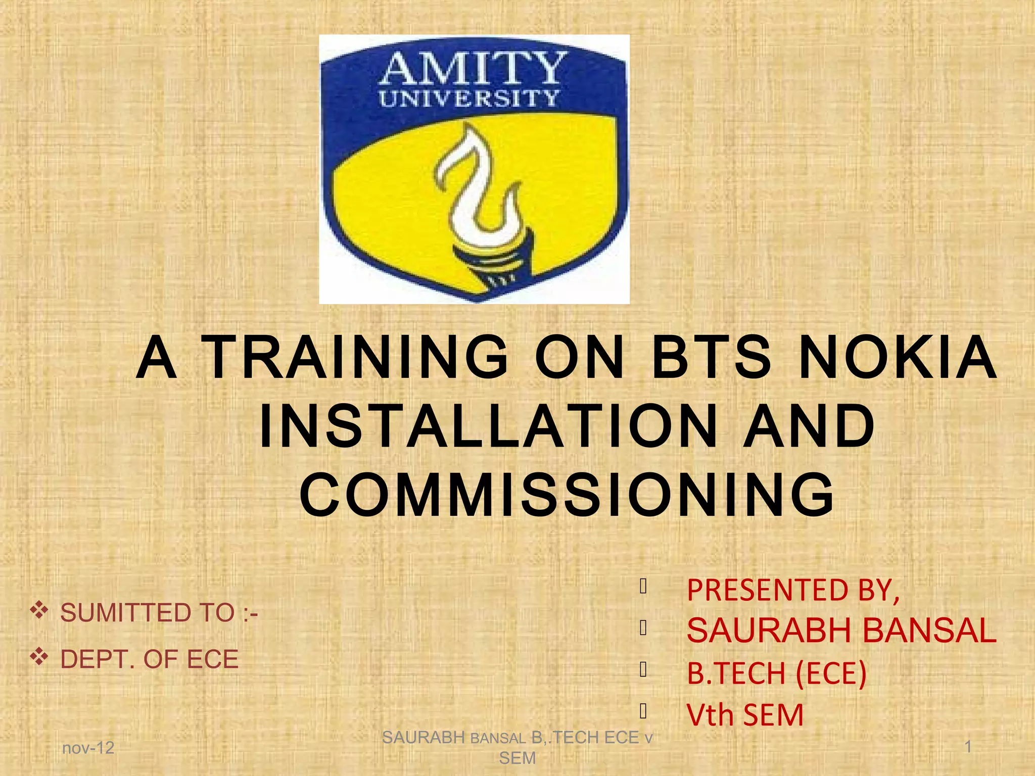 3) The commissioning process involves 12 steps like hardware installation, software configuration, RF parameter checks, traffic tests and O&M integration to activate the BTS in the live network.