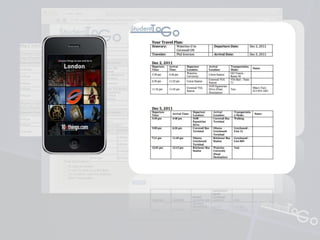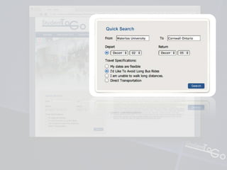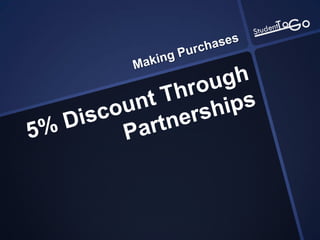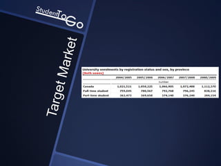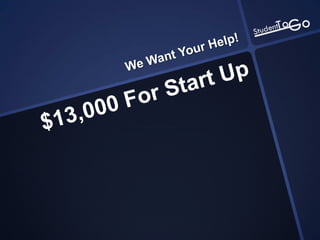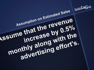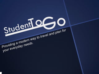 The document outlines plans for a new transportation startup called StudentToGo. It includes details on partnerships with transportation companies, the ticketing process, estimated costs and revenues, and a cash flow budget projecting profitability within 9 months. Key aspects of the startup include developing technology to integrate multiple transportation options and paying companies per ticket issued to provide students an affordable transportation solution.
