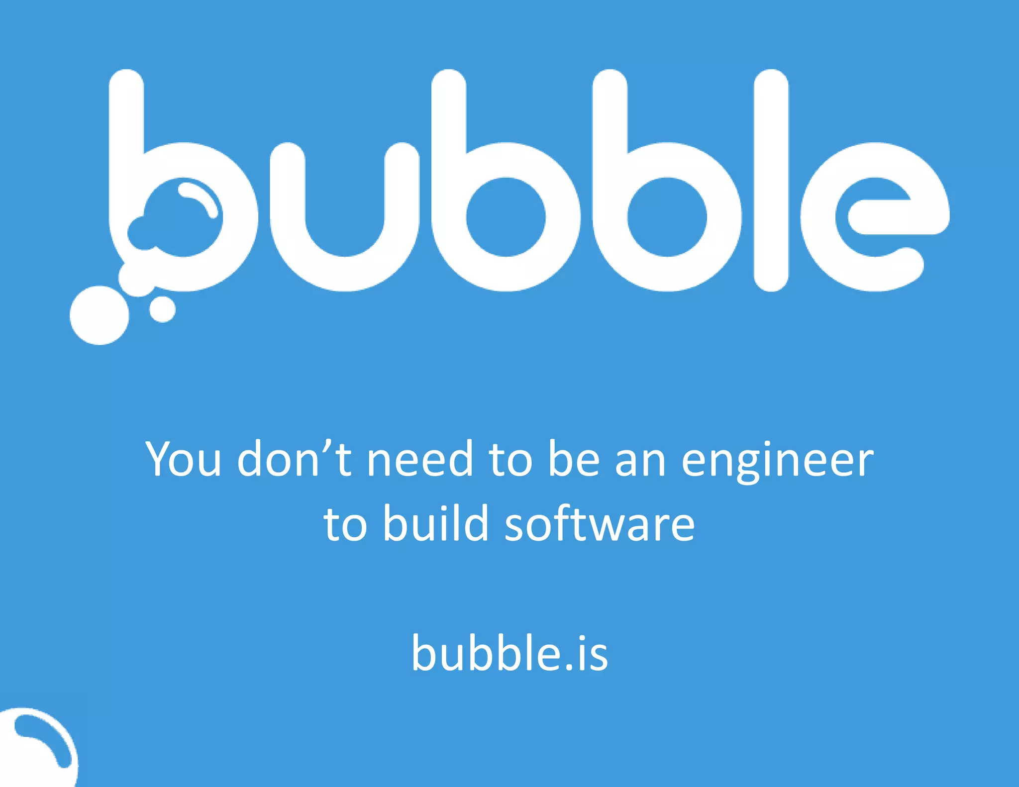 Bubble is a visual programming platform that allows users to build web and native applications without traditional coding skills, using a natural-language interface and drag-and-drop elements. It supports integration with existing APIs and offers cloud hosting for applications, enabling non-technical users to create fully functional products. Key examples include an art recommendation platform and a site that cloned Twitter in under four days.