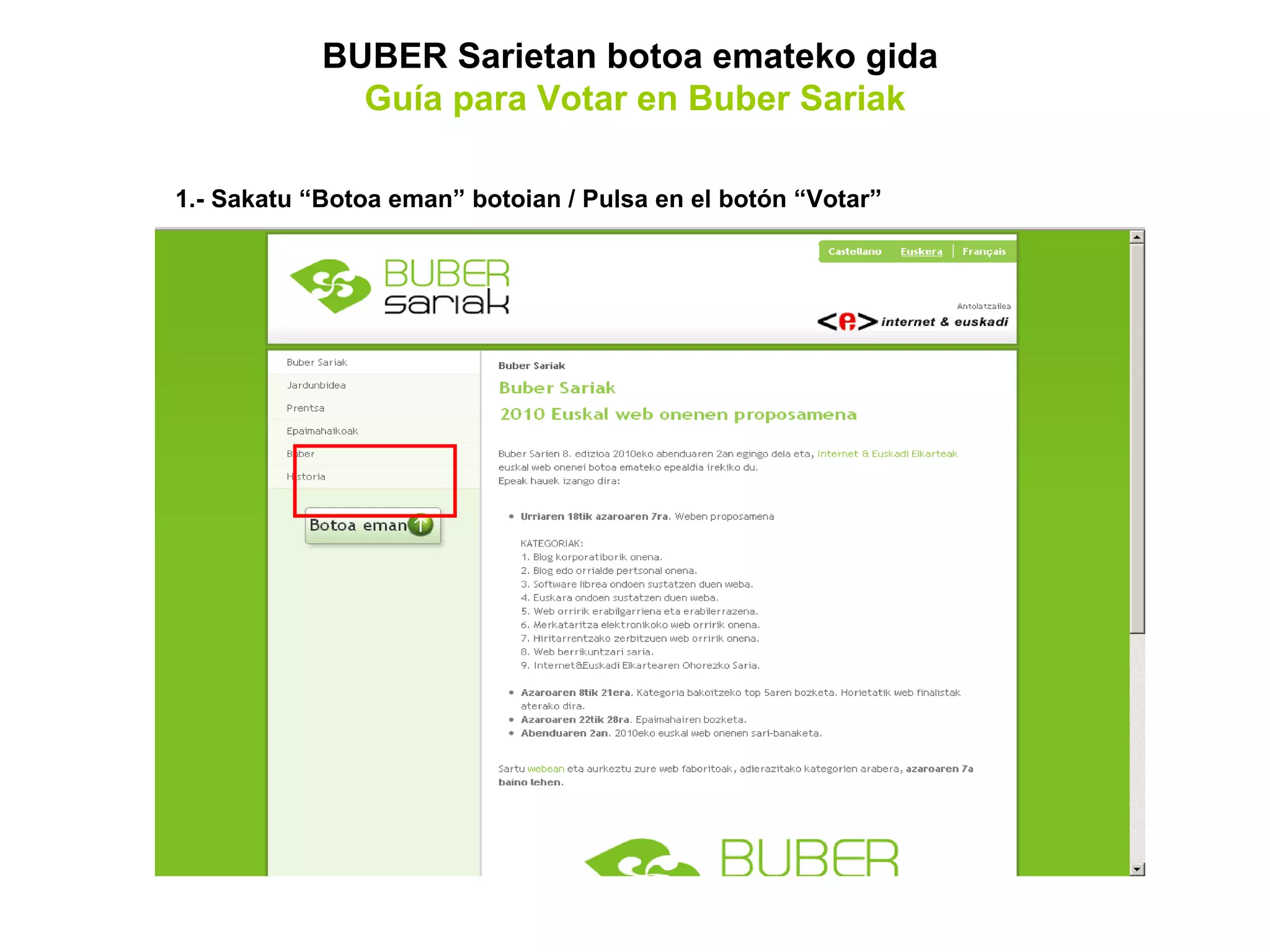 1.- Sakatu “Botoa eman” botoian / Pulsa en el botón “Votar”