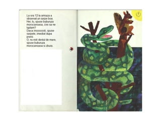 Documentul oferă activități pentru grădiniță legate de povestea «buburuza morocănoasă». Aceste activități includ jocuri de domino, fișe de lucru, măști, labirinturi și exerciții legate de culori și ore. Scopul acestora este de a facilita învățarea interactivă prin povești și jocuri.