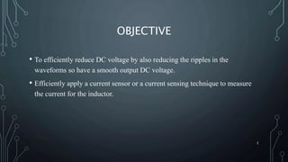 1. The objective is to efficiently step down DC voltage while reducing ripple to produce a smooth output voltage, and to measure the inductor current.