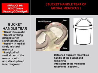 commonest bucket handle tear ( 10 height than anterior horn …..