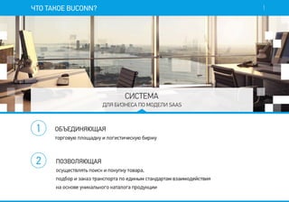 Система для малого и среднего бизнеса по модели SaaS, объединяющая торговую площадку и логистическую биржу, позволяющая осуществлять поиск и покупку товара, подбор и заказ транспорта по единым стандартам взаимодействия на основе уникального каталога продукции.