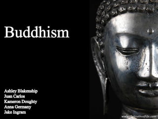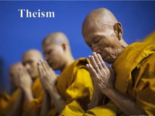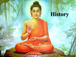 Hinduism was established in India in 1500 BCE, featuring texts like the Vedas and a caste system. The Upanishads taught concepts like samsara, karma, and moksha. Siddhartha Gautama was born in 480 BCE and discovered suffering through encountering old age, disease, and death. He attained enlightenment and became the Buddha, spreading his teachings of the Four Noble Truths and Noble Eightfold Path through India and Asia. Buddhism is considered both a philosophy and religion by some definitions and focuses on meditation, wisdom, and compassion rather than faith or gods.