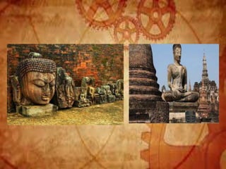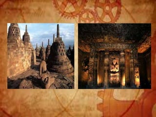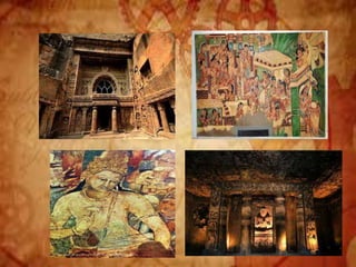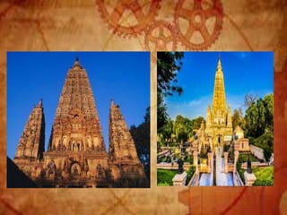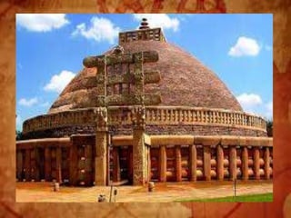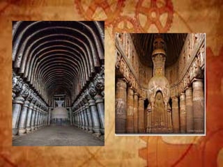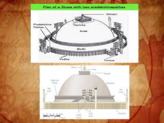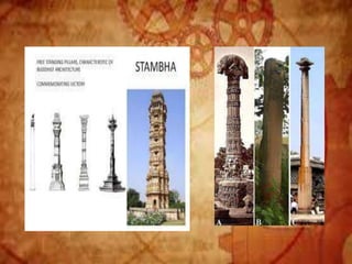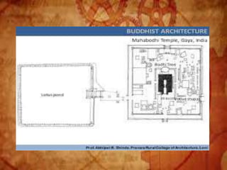 Buddhist architecture originated in the Indian subcontinent and comprises three main structures: monasteries, relic veneration places, and prayer halls, evolving from symbols of Buddha's life. Key elements include stupas, stambhas, chaityas, and viharas, showcasing unique architectural features and examples like the Sanchi Stupa and the Iron Pillar of Delhi. Important sites such as the Ajanta and Ellora caves, as well as the Mahabodhi Temple, reflect the rich cultural and artistic heritage of Buddhism.