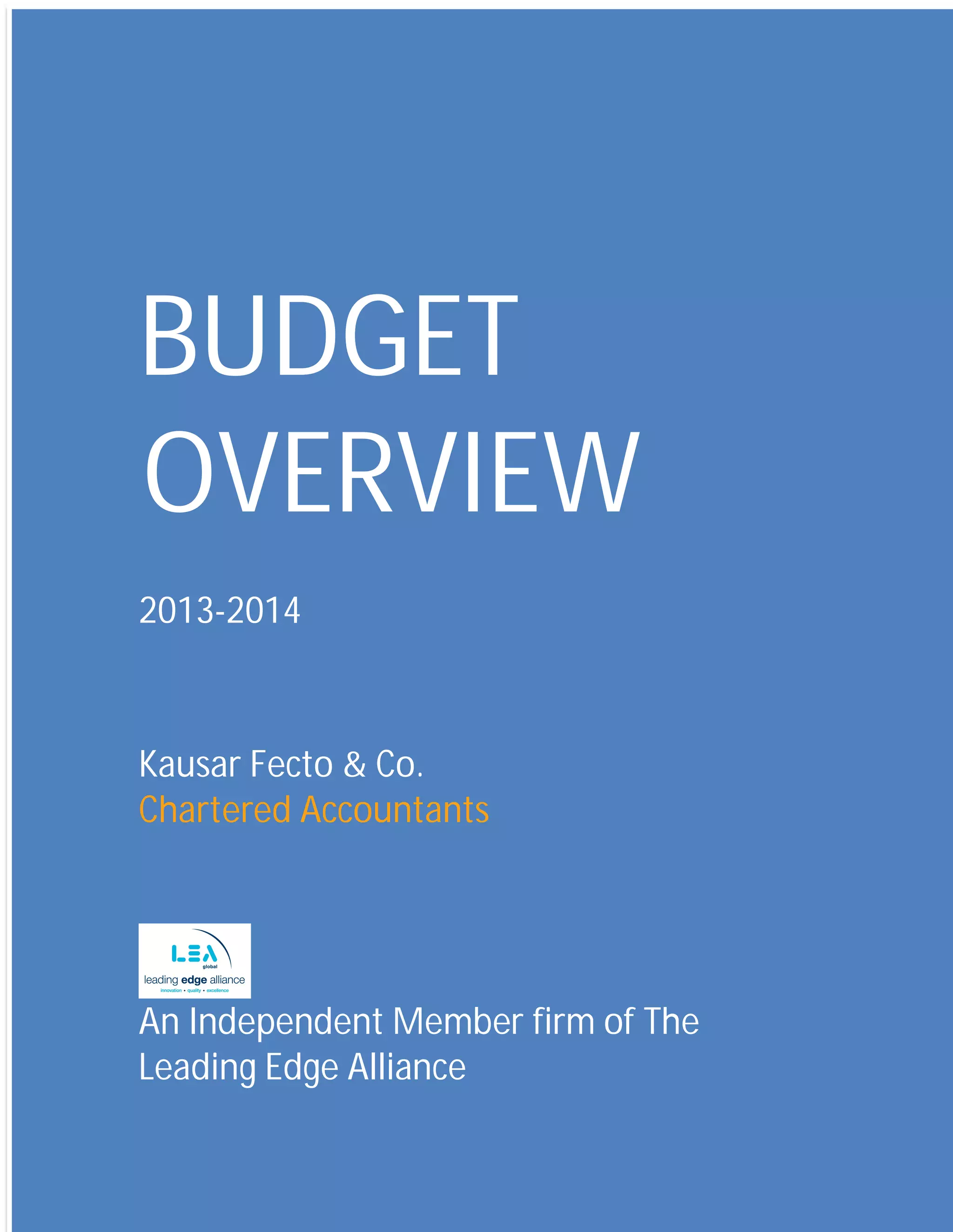 This document provides an overview of Pakistan's budget and economy for the 2013-2014 fiscal year. It highlights several key economic indicators such as GDP growth, investment levels, inflation rates, and fiscal developments. It also outlines significant proposed amendments to Pakistan's income tax, sales tax, and federal excise policies, including changes to tax rates and exemptions.