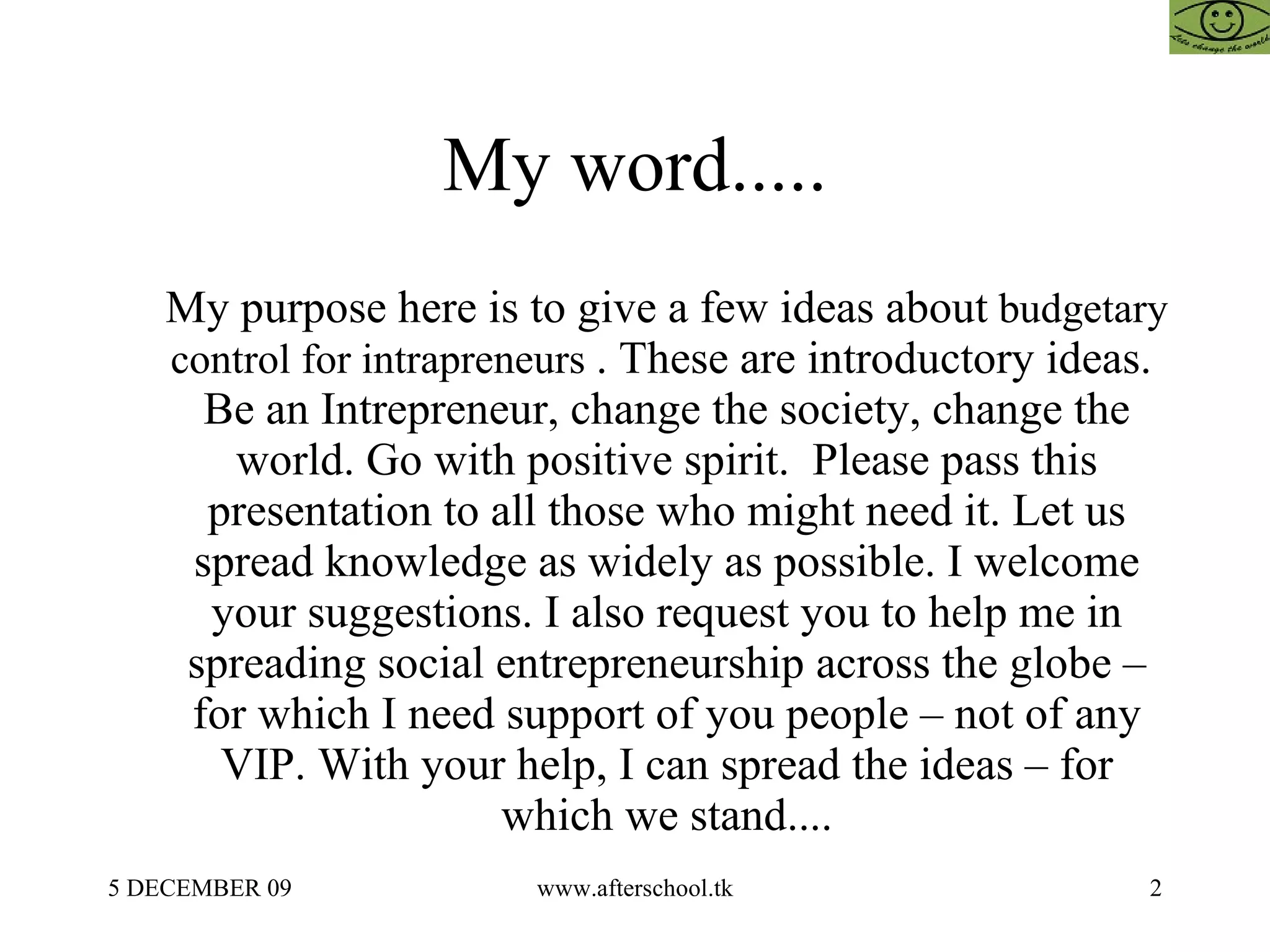 1. The document provides an overview of budgetary control for intrapreneurs, including defining budgets, standards, and the budgetary control process.