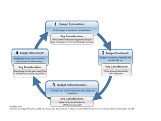 Budgeting at differentlevel differs Organisations Ways to communicate plans Public health programme Resources in to services Central and State government Policy & plans for implementation