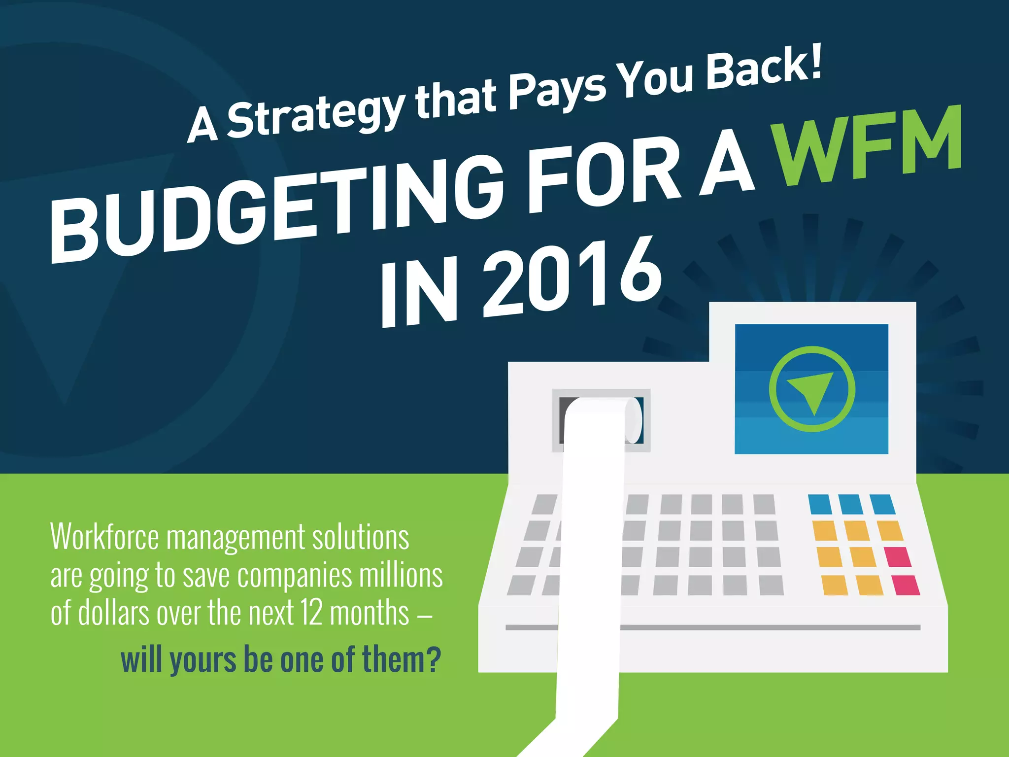 The document discusses the importance of workforce management (WFM) solutions for budgetary success in 2016, highlighting potential savings and efficiency improvements. Investing in WFM can lead to better sales forecasting, reduced labor costs, higher employee engagement, and compliance with labor laws, ultimately resulting in a rapid return on investment. The document encourages organizations to consider WFM as a strategic initiative to support growth and improve operational effectiveness.